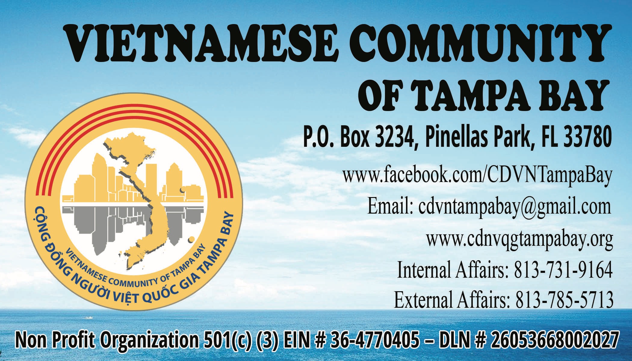 • Tổ chức vô vụ lợi theo quy chế 501(c)3. Các quyên góp đều được khấu trừ thuế.